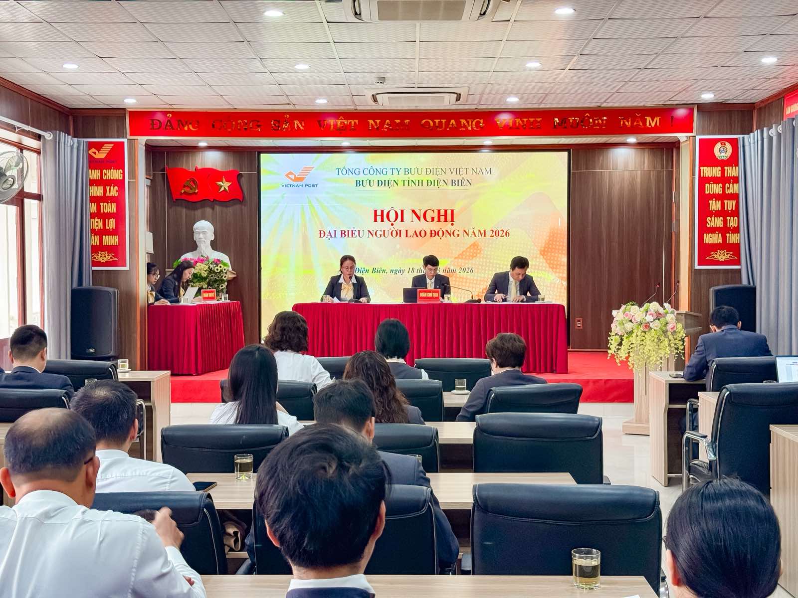 Sáng ngày 18/3/2026, Bưu điện tỉnh Điện Biên tổ chức Hội nghị đại biểu người lao động năm 2026 nhằm phát huy dân chủ cơ sở, đánh giá kết quả thực hiện nhiệm vụ sản xuất kinh doanh năm 2025 và triển khai phương hướng, nhiệm vụ năm 2026. Hội nghị diễn ra trong không khí nghiêm túc, dân chủ, với sự tham dự của Ban Giám đốc, đại diện các phòng chức năng, đơn vị trực thuộc và đại biểu người lao động trong toàn đơn vị.