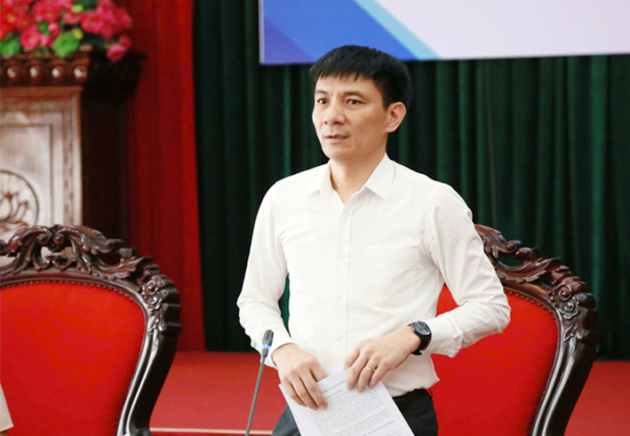 Ông Vũ Anh Tuấn, Giám đốc Bưu điện thành phố Hải Phòng trao đổi tại hội nghị